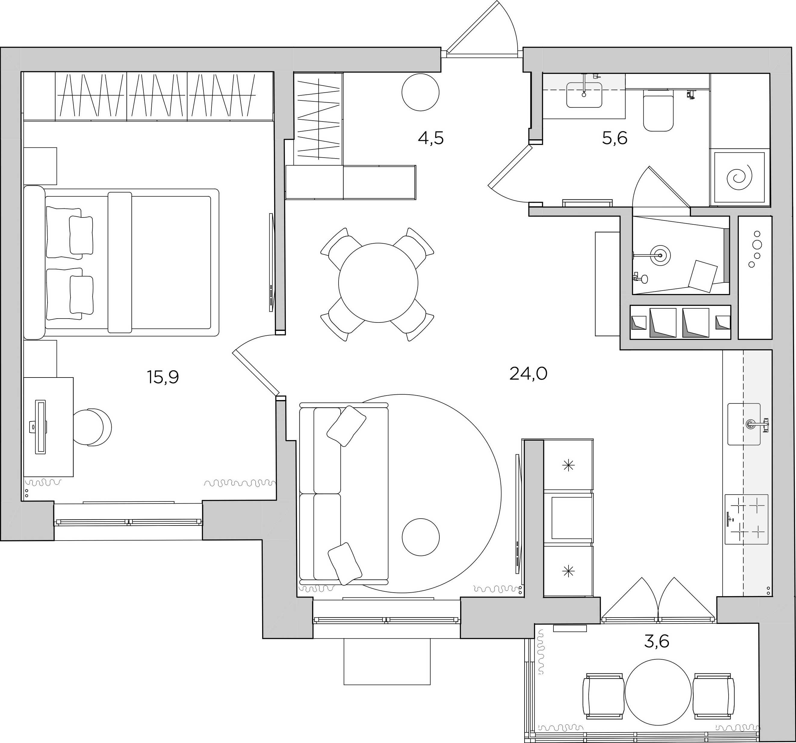Мы сделали дизайн-проект и ремонт этого интерьера. Мы подготовили смету и зафиксировали стоимость реализации еще на этапе проектирования, и в процессе ремонта сумма не изменилась.
